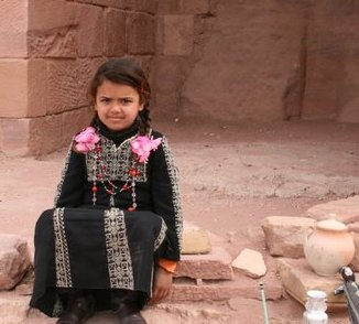 Bedouin girl in the Wadi Musa or the Valley of Moses. It is believed that Moses led the Israelites through this valley on the way to the Promised Land. Wadi Musa is the valley where Petra is located. |
