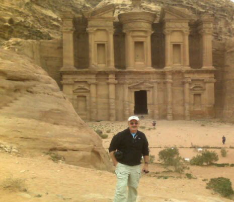 Steve in front of Al Dier, “The Monastery”, Petra’s largest monument which dates from the first century B.C. It was dedicated to Obodas I. These buildings were actually tombs. |