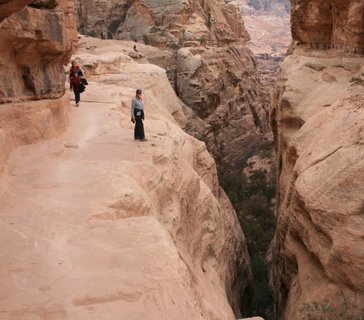 These are photos that Steve took as they progressed through the Siq into Petra. The Siq is a grand caravan entrance into Petra. It is a canyon and the walls are lined with water channels to carry drinking the water to the city. The Nabataeans who lived here were experts in hydraulic engineering. |