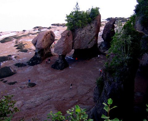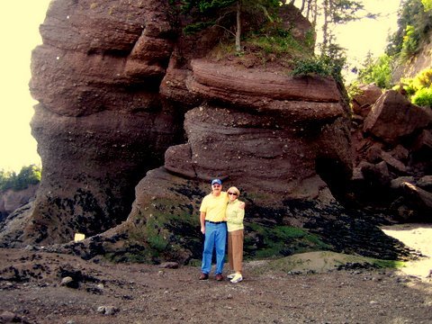 New Brunswick borders Quebec and the St. Lawrence in the north and Maine to the west, with the Bay of Fundy and Nova Scotia to the south, and the Gulf of St. Lawrence and Prince Edward Island to the northeast. The official languages of the province are English and French. Its most famous site is the Bay of Fundy which has the highest tides in the world. Below are photos of Steve and Sally standing beside the Flower Pot Rocks at Rocks Provincial Park at Hopewell Cape. Some of these interesting formations are over 50 feet high and their shapes have been formed as a result of the Bay of Fundy tides. When the tides come in all you can see are the trees which grow at the top of the rocks. When the tides go out it’s a wonderful opportunity to walk on the ocean floor and park rangers blow a horn to let you know it is time to leave and that the tides are coming in.