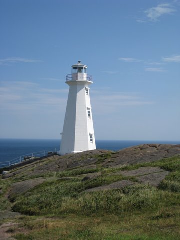 Sally and Steve are standing at Cape Spear National Historic Site of Canada, the most easterly point of land in North America. Located outside of St. John’s , the park is the home to the Cape Spear lighthouse, the oldest surviving lighthouse in Newfoundland and Labrador. It was built in 1836 and today it has been refurbished as a light keeper’s residence that you can tour. During World War II, Cape Spear hosted a coastal defense battery to protect the Newfoundland coast and North America from German submarines. |