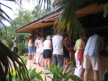 We visited an agricultural school which has a lovely botantical garden. The school has 175 students who attend for 3 years, going home on weekends. This is where the hotels get all their flowers. First we toured the gardens, then bellied up to the bar to sample some of the many fruit jellies they make plus their wonderful ice cream! You can also buy fresh vanilla here. |