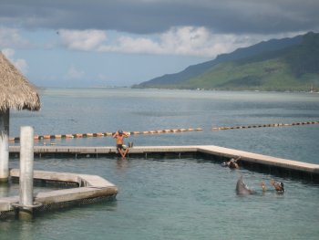 The InterContinental Moorea is home to Dolphin Encounter. One of the fun things to do is to have a closeup and personal session with a dolphin or just watch the dolphins interacting with others. |