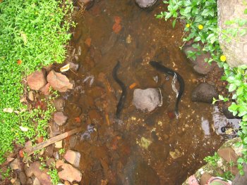 The eels that live in the river beds in Tahiti have blue eyes and the legend goes that they are reincarnated “Tahitian Princesses”. One of our first stops on the tour was to a small creek where we fed and got to pet the eels.