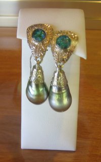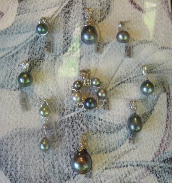 Elizabeth Wong is a talented jeweler and we visited her lovely shop, Eimeo Fine Jewelry, when we were in Moorea. It is located on the road to the distillerie. Her black pearl creations are very different and wonderful.