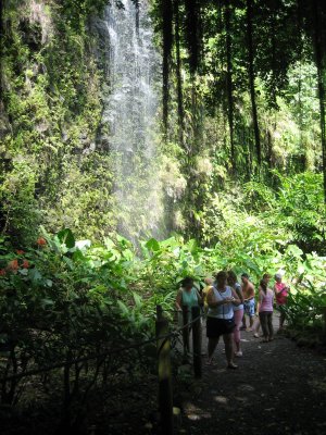 Due to the heavy rains that Tahiti had been having, the waters were really flowing when we were there. Maraa Fern Grotto is one of our stops on our Circle Island Tour and there are three areas where the water flows down from the volcano creating waterfalls, rivers and a swimming hole. This area was especially beautiful this time with lots of water and flourishing plants.