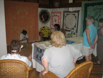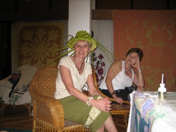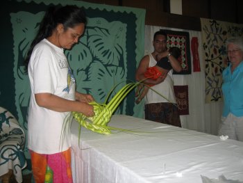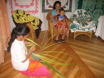 Heinui’s sister taught everyone how to weave a hat. One of the nice things about hanging out with the family is that teach us how Tahitians do things. Last tour Henriette taught the group how to make the beautiful flower leis. |
