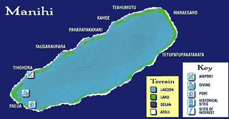 The Manihi atoll is part of the Tuamotus and is located 312 miles northeast of Tahiti (an 1 hour and 40 minute flight) and was the site of the first pearl farm. Its crystal clear lagoon, is 3 1/2 miles wide by 19 miles long surrounded by secluded white-sand beaches and the atoll has a deep navigable pass through the reef. This atoll was the site of the first pearl farm in the Tuamotus and and is home to many black pearl farms today. One thousand people live on Manihi, most living in Turipaoa village beside the pass. There was one resort on the island, the Manihi Pearl Beach Resort. Unfortunately, it closed in September 2012. Above are two links to show you some of the fun things you were able to do on Manihi. Perhaps in the future another hotel will open up so you can enjoy this wonderful island.