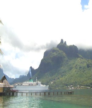 Eleven miles across the Sea of the Moon from Tahiti lies Moorea with its volcanic peaks and sparkling lagoons. Moorea is 38 miles around and there is only one road that goes around the island. There are two bays, - Cook’s Bay and Opunohu Bay and the majestic peaks of Mouaroa, Rotui and Tohivea. You can swim, snorkel, scuba dive, or just relax on the beautiful beaches while you walk the lagoons and watch the never-ending flow of fish and other sea creatures that meander around the coral reefs. You can also play with the dolphins at Dolphin Quest- an unbelievable experience where you are “up close and personal” with these magnificent creatures.
