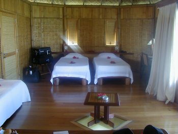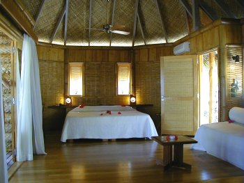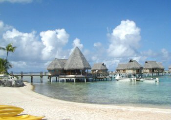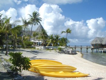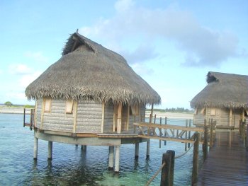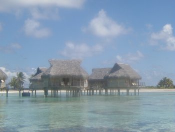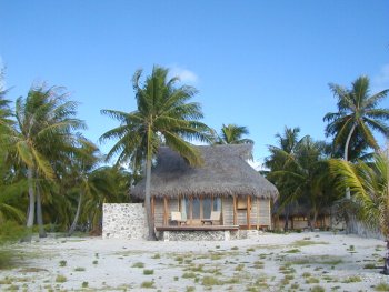 The Tikehau Pearl Beach Resort opened in May of 2001. Reachable only by boat, the small resort is located on a secluded white sand beach fringed with palms. It has 14 beach bungalows (6 with air conditioning) and 16 overwater bungalows. The resort offers many excursions and activities and has a Blue Nui scuba diving center. The staff is wonderful and they go out of their way to make your stay at Tikehau as pleasurable as possible. |