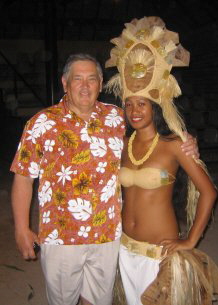 One of the fun things to do at Tiki Village is to have your photo taken with the dancers after their performance. The dancers seem to enjoy it just as much as the tourists do! |