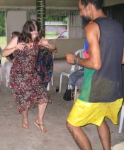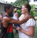 The celebration lasted all afternoon and well into the evening. As the pictures below demonstrate, the lack of a language in common didn’t detract from the festivities! Everyone agreed that Didi and Heinui’s wedding and the love we felt from their families was the high point of our trip. |