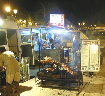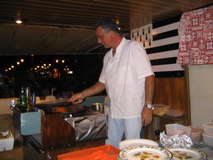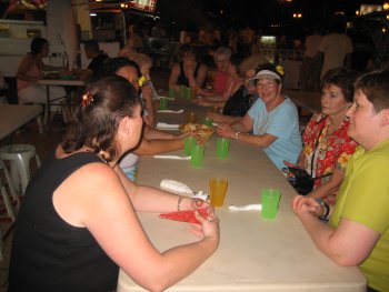 Another Tahitian experience that the group experienced was eating at the roulottes on the dock in downtown Papeete. These are food vans and the food cooked there tells the history of Tahiti. You can eat fantastic Chinese food because the chinese were brought to Tahiti in the 1860s to work on a cotton plantation. When the plantation went bankrupt, many of the Chinese stayed on Tahiti and they are many of the merchants in Tahiti today. The French colonized Tahiti and you can feast on crepes, poisson cru, and othe french delicacies. The Tahitians will cook entire pigs, have wonderful meats and the roulotte experience is an amalgam of the culture ofTahiti.