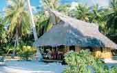 For the ultimate Robinson Crusoe experience, you might want to stay at the Kia Ora Sauvage. There are only five bungalows on this remote island in the middle of the Rangiroa lagoon. To get to this deserted motu you take an one-hour boat ride from the Kia Ora Village. The bungalows are similar to cabins and all have private bathrooms. There is no electrical lighting and hot water and lanterns are brought to your bungalow each evening. There is a new restaurant and bar at the resort that you can enjoy during your minimum two-night stay. Staying at the Kia Ora Sauvage is a totally unique experience in French Polynesia and one that adventuresome clients rave about.