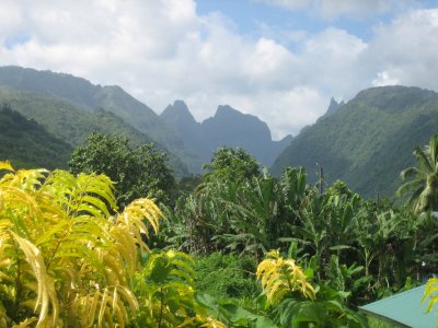 This is a site you don’t see very often. The volcanoes of Tahiti. They are usually shrouded in clouds.