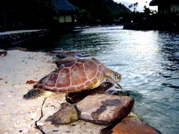 The Sea Turtle Rehabilitation Centre was established at the InterContinental Resort in February 2004. The turtles at the center are sick, injured or handicapped or have been seized by customs and turned over the Tahitian Department of Environment. They are given to the centre to be cared for and nursed back to health, then tagged and released into the open ocean. The most common sea turtles found in Polynesian waters are the green sea turtle and the hawksbill turtle.