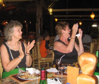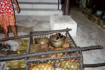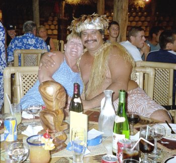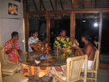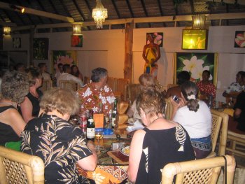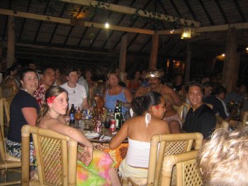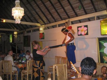 Part of the experience of going to Tiki Village, is the opportunity to enjoy the Tamaara’a, the Tahitian meal that is cooked in the ground. A pit is dug in the sand, fire is started, the food is put over the fire and covered up with palm fronds. We were shown how the food is cooked and later were able to taste it.