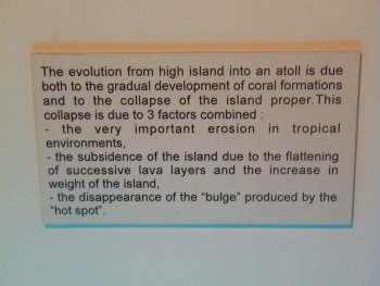 Tahiti and her Islands consists of five archipelagos - the Society Islands (Tahiti, Moorea, Huahine, Raiatea/Taaa and Bora Bora), the Tuamotus, the Mangrevas, the Australs and the Marquesas. The Tuamotus archipelago consists of 76 low islands or coral atolls, scattered over several hundred miles of the eastern Pacific ocean. An atoll is a coraline ring that lies atop an underwater volcano. The inside of an atoll is a lagoon and the outside is the ocean. Some of the atolls have passes that allow the ocean water to come into the lagoon. The elevation of the islands ranges from 6 to 20 feet and twenty varieties of plants and shrubs have adapted to the salty soil and dry climate and provide food and shelter for the inhabitants of the atoll. The climate is hot year-round, but the period from May and October is the coolest and the driest.