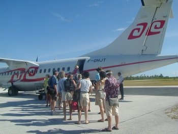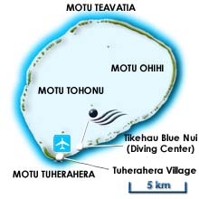 Tikehau, with its 400 inhabitants, is an almost circular atoll which is 26 kms across with the shallow Passe de Tuheiava on its west side. The atoll is located 300 km to the northwest of Tahiti and is about 12 km from Rangiroa. Tuherahera village and the airstrip share an island in the southwest corner of the atoll. You arrive at the Tikehau airport and are greeted by representatives of the Tikehau Pearl Beach Resort, Jeanne and Hugo. After a short bus ride, you are taken to the dock and you approach the resort by boat. Life on Tikehau centers around the lagoon, the sea life and is also home to many bird colonies. Passe de Tuheiava is an important center for lagoon fishing and in the lagoon are fish parks that supply the markets of Tahiti plus there is a motu on the northeast side of the lagoon that produces copra.